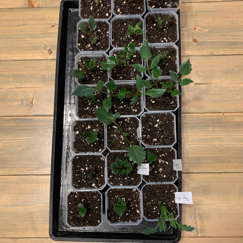 You have a tuber or two with beautiful green growth, now what? Prepare by filling either a multi-cell tray (72 or 50) or a tray full of larger cells with your preferred seed starting mix. It helps to pre-moisten your mix before starting as well, add enough water to make the soil “spongy” but not dripping wet. You will also want to have your trusty pair of snips cleaned and ready, as well as a rooting hormone available. Once you have all of these things ready, follow these steps: